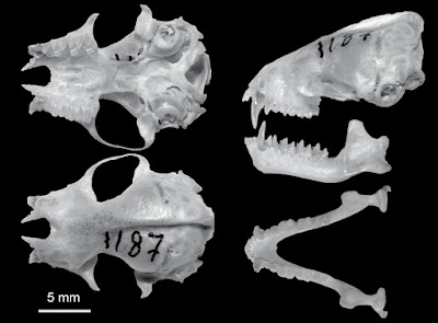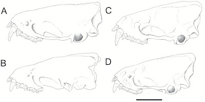 | Fig. 4. Lateral view of skull of C) C. dimissus from Laos (MHNG 1926.053), and D) C. dimissus from Nepal (UMMZ 172218). The scale bar at the bottom represents 5 mm. |