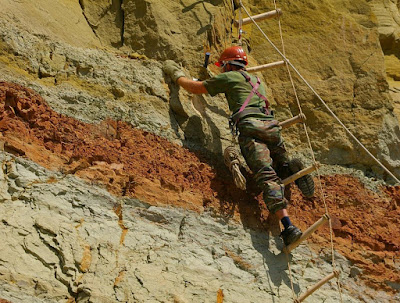 | The fossil dig site at St Bathans in New Zealand where the fossilised remains of an extinct giant burrowing bat, Vulcanops jennyworthyae, were found.
