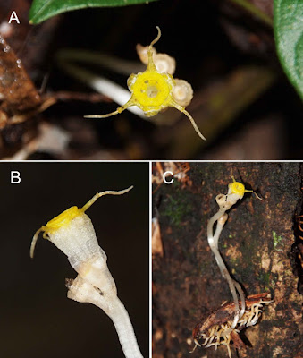 | FIGURE 1. Thismia bokorensis from the type locality. A–B. Flowers. C. Flowering plant. |