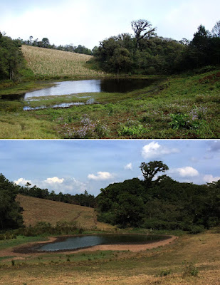 | Type locality of Rana lenca; San Pedro La Loma, 2010 m elevation, Depto. Intibuca, Honduras. in January 2008 (top) and during drought conditions in May 2015 (bottom). |