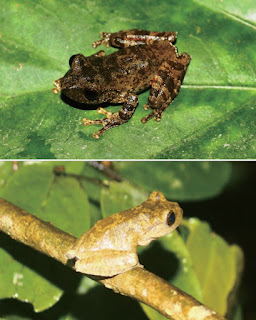 | Paratypes of Rana lenca from Reserva Biologica Cerro Uyuca, 1,640 m elevation, Departamento de Francisco Morazan,Honduras: (1) adult female paratype (UF 166642; 64.3 mm SL); (2) Subadult female paratype (UF 166643) and tadpole (UF 166637).