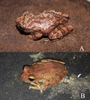 | Figure 1. Live adult Rhacophorus jarujini from Phu Phan NP (Sakon Nakhon province) (A) and Phu Jong-Na Yoi NP (Ubon Ratchathani province) (B)