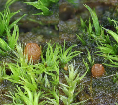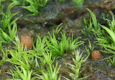 | FIGURE 1. Lamprospora sylvatica (B Eckstein-43421). apothecia between shoots of Dicranum montanum.