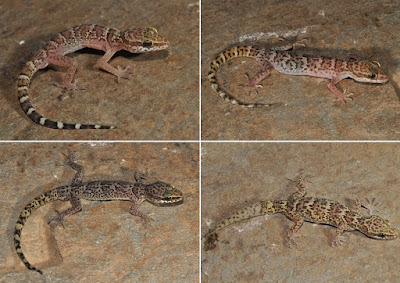 | FIGURE 8. Type series of Cyrtodactylus chamba sp. nov. in life, BNHS 2330 (top left), BNHS 2331 (top right), BNHS 2333 (bottom left), BNHS 2334 (bottom right). |