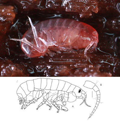 Etymology: This species is named after the distinct reddish color while the amphipod alive (Fig 2).