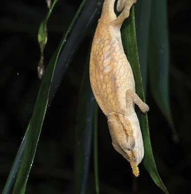 | Figure 7. In-situ photograph of an uncollected (in sleeping position) female of Calumma roaloko sp. n., from the same locality as KU 343168. |