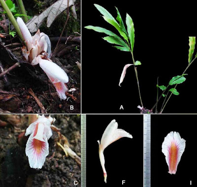 Affinities: The species shows similarity with Amomum maximum in having bi-lobed ligule, white flowers, and non-stoloniferous rhizome, but differs in many attributes. A comparison with two other related species Amomum glabrum S. Q. Tong and A. menglaense S. Q. Tong are also presented (Table 1).