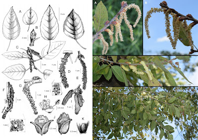 Abstract Populus primaveralepensis A.Vázquez, Muñiz-Castro & Zuno sp. nov., a new species from relict gallery cloud forest in Bosque La Primavera Biosphere Reserve (Mexico), is described and illustrated. The new species belongs to P. subsect. Tomentosae Hart., and is morphologically similar to P. luziarum A.Vázquez, Muñiz-Castro & Padilla-Lepe, but differs from it in having taller trees without root suckers, white and ringed young stems and branches, a branching angle of ca 45º, leaves with higher blade to petiole ratio, leafs frequently elliptic or ovate to widely ovate (vs widely ovate to ovatedeltoid), denser inflorescences, and shorter capsules. The conservation status of the species was assessed as Critically Endangered (CR). Keywords. Mexico, Populus luziarum, Populus simaroa, Populus sect. Aigeiros, Salicaceae.