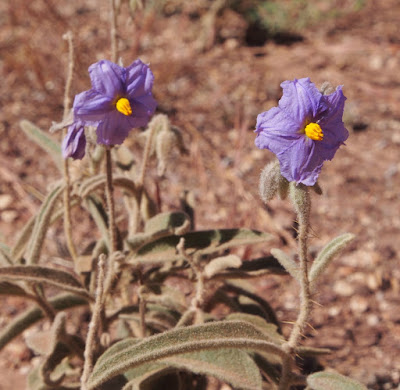 Diagnosis: Like Solanum eburneum, Solanum watneyi and Solanum succosum, but differing by having elliptic, unlobed (or rarely very shallowly lobed) leaves, small apical leaves, long calyx lobes on the staminate flowers and fully erect staminate inflorescence branches. ...