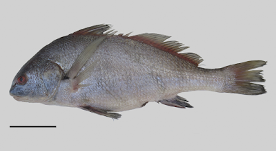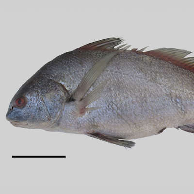 | Fig 1. Pogonias courbina. Neotype. Argentina, Provincia de Buenos Aires, San Clemente del Tuyú, 488 mm SL. Scale bar = 10 cm. |