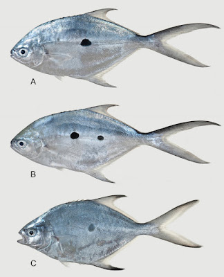 William F. Smith-Vaniz and Stephen J. Walsh. 2019. Indo-West Pacific Species of Trachinotus with Spots on Their Sides as Adults, with Description of A New Sspecies Endemic to the Marquesas Islands (Teleostei: Carangidae). Zootaxa. 4651(1); 1–37. DOI: 10.11646/zootaxa.4651.1.1