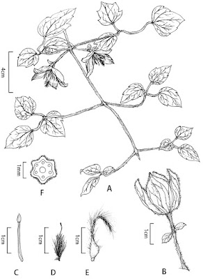 | Figure 1. Clematis guniuensis W.Y.Ni, R.BWang & S.B.Zhou. A Habitat in flowering period B Inflorescences with budding flower, showing the bracts C Stamen D Pistil E Achene F Stem cross-section. |