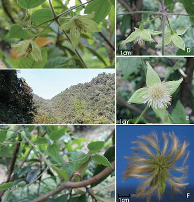Diagnosis: Resembles C. florida Thunb. and C. huchouensis Tamura but can be distinguished from the former one by puberulous leaflet blades, longer petiole, larger flowers with light green sepals, longer stamens and white filaments and from the latter by its longer petioles, 3-lobed leaflet blades, shorter pedicel, larger flowers, 4 sepals, filaments about 3–5 times the length of the anther, persistent style 1.5–2 cm long, and yellow plumose. ...