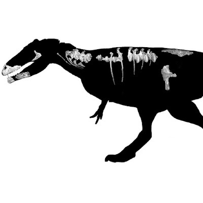 Restoration of Lajasvenator ascheriae showing which bones have been collected. |