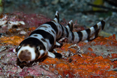 | A walking shark Hemiscyllium strahani in Depapre Bay, Indonesia.