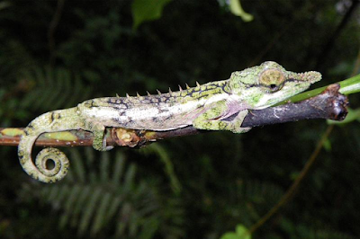 Calumma emelinae sp. nov. adult male (not collected) from the type locality in Makira in stress colouration. |