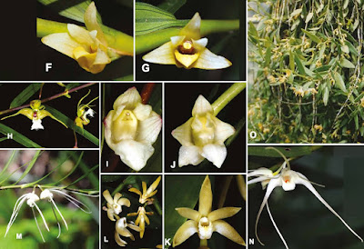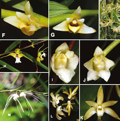 I–J. D. unicarinatum Kores. Cult. Nouméa. K–L. D. crassifolium Schltr. M. D. camaridiorum Rchb.f.