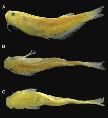 [Ichthyology • 2020] Trichogenes beagle • A New Species of Trichogenes (Siluriformes, Trichomycteridae), with A Discussion on the Homologies of the Anterior Orbital Bones in Trichomycterids and Other Loricarioids  | A. Trichogenes beagle de Pinna, Reis & Britski, 2020 B. T. claviger de Pinna, Helmer, Britski & Nunes, 2010 C. T. longipinnis Britski & Ortega, 1983