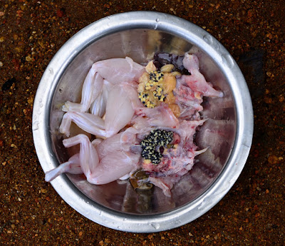 | Mantidactylus (Mantidactylus) radaka sp. nov. being prepared for human consumption.