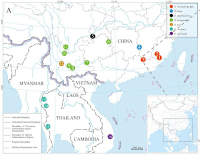 Distribution: Tropical and subtropical eastern and southeastern mainland Asia, including southern China, Myanmar, Vietnam, Laos, and northern Thailand.