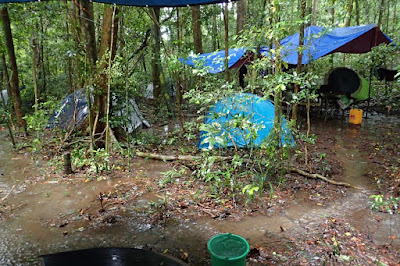| Rhombophryne ellae was captured just as Cyclone Ava [December 2017] began to make itself felt across Madagascar with high winds and heavy rain. The camp where Dr. Scherz and his team were based became flooded, with rivers running through the kitchen and sleeping area. Miserable weather for humans, but a time of increased activity for some of the more elusive amphibians of the forest. |