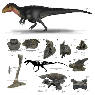 Elisabete Malafaia, Pedro Mocho, Fernando Escaso and Francisco Ortega. 2020. A New Carcharodontosaurian Theropod from the Lusitanian Basin: Evidence of Allosauroid Sympatry in the European Late Jurassic. Journal of Vertebrate Paleontology. e1768106. DOI: 10.1080/02724634.2020.1768106