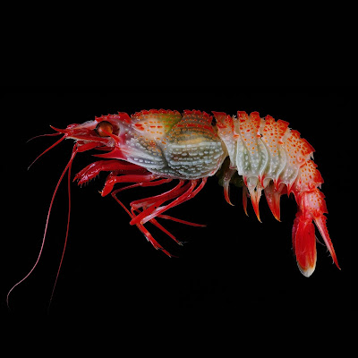 | Fig. 6. Glyphocrangon serratirostris, new species, holotype ovigerous female (cl 22.0 mm), MZB Cru5055, habitus in lateral view, showing living colouration. |
