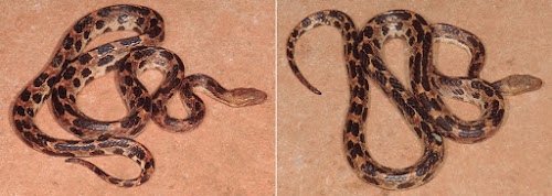 | Figure 1. Tropidophis steinleini sp. nov., two different views of the female holotype MNHNCu 5079 in life. Photos: L. M. Díaz. |