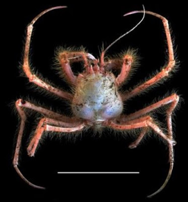 | Colour in life. Homolodromia rajeevani sp. nov., holotype male (IO/SS/BRC/00174). | Family Homolodromiidae Alcock, 1899 Genus Homolodromia A. Milne-Edwards, 1880 Homolodromia A. Milne-Edwards, 1880: 32. Type species: Homolodromia paradoxa A. Milne-Edwards, 1880 by monotypy. Homolodromia rajeevani sp. nov. Etymology: The specific epithet rajeevani is in honour of the distinguished scientist and Secretary, Ministry of Earth Sciences, Government of India, Dr. Madhavan Nair Rajeevan who has been the guiding force in the deep-sea research programmes of CMLRE. Vinay P. Padate, Sherine Sonia Cubelio and K. V. Jayachandran. 2020. Description of A New Species of Deep-water Crab of the Genus Homolodromia A. Milne-Edwards, 1880 from the northern Indian Ocean (Crustacea: Decapoda: Brachyura: Homolodromiidae). Marine Biology Research. DOI: 10.1080/17451000.2020.1735641 k