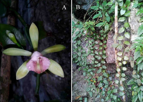 | Fig. 1. Vanilla tiendatii A. Flowering plants in the wild B. plants in their natural habitat,. Photo by Bui Tien Dat. |