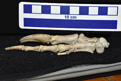 acr, acromion process; astr, astragalus; bt, biceps tubercle; calc, calcaneum; cor, coracoid; corf, coracoid foramen; cr, cervical rib; crtb, ceratobranchial; cs, caudosacral vertebrae; dent, dentary; dist, distal end; dor, dorsal vertebrae; ds, dorsosacral; dt III, distal tarsal III; dt IV, distal tarsal IV; epi, epipophysis; epic, epicleidum; fib, fibula; for, foramen; fr, frontal; glen, glenoid; gt, greater trochanter; h, head; hypc, hypocleidum; idpf, infradiapophyseal fossa; il, ilium; isc, ischium; I–IV, pedal digits I–IV; lat, lateral trabecula; mt II–IV, metatarsals II–IV; mx, maxilla; nas, nasal; ns, neural spine; p1–p3, pygostyle vertebrae 1–3; par, parietal; ?path, possible pathology; pbt, pubic boot; pdp, proximodorsal process; pl, pleurocoel; pmx, premaxilla; pop, popliteal fossa; post, postorbital; prox, proximal end; pub, pubis; q, quadrate; qj, quadratojugal; sac, sacral vertebrae; scap, scapula; spdf, supradiapophyseal fossa; stcp, sternocoracoidal process; tib, tibia; tp, transverse process. |