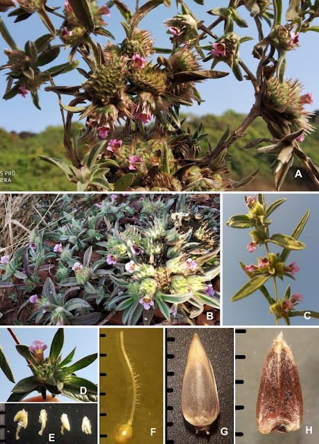 | FIGURE 1. Lepidagathis shrirangii. A. & B. Habit; C. Apical inflorescence; D. Inflorescence; E. Stamen; F. Carpel; G. Capsule; H. Seed. |