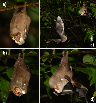 Bernal Rodríguez-Herrera, Ricardo Sánchez-Calderón, Victor Madrigal-Elizondo, Paulina Rodríguez, Jairo Villalobos, Esteban Hernández, Daniel Zamora-Mejías, Gloria Gessinger and Marco Tschapka. 2020. The Masked Seducers: Lek Courtship Behavior in the Wrinkle-faced Bat Centurio senex (Phyllostomidae). PLoS ONE. 15(11): e0241063. DOI: 10.1371/journal.pone.0241063