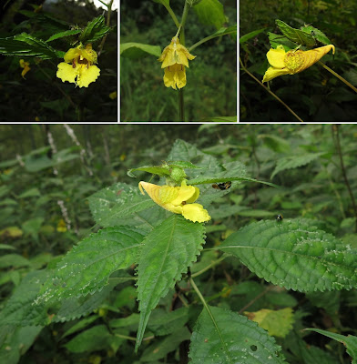 Diagnosis: Impatiens plicatisepala differs from I. davidii and I. dicentra in the stipitate glands at leaf base, the dimorphic bracts (one linear, the other broadly ovate), the broadly ovate and abaxially plicate lateral sepals, and the ellipsoid and rugose seeds. ....
