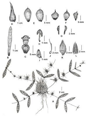 | FIGURE 3. Lepidagathis shrirangii. A. Habit; B. Leaf; C. Flower; D. Bract; E. Bracteoles; F. Outer calyx; G. Inner calyx; H. & I. Stamen; J. Carpel. K; Capsule; L. Seed. |