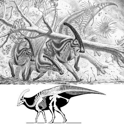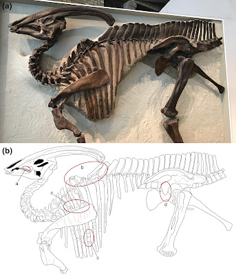 Filippo Bertozzo, Fabio Manucci, Matthew Dempsey, Darren H. Tanke, David C. Evans, Alastair Ruffell and Eileen Murphy. 2020. Description and Etiology of Paleopathological Lesions in the Type Specimen of Parasaurolophus walkeri (Dinosauria: Hadrosauridae), with proposed Reconstructions of the Nuchal Ligament. Journal of Anatomy. DOI: 10.1111/joa.13363