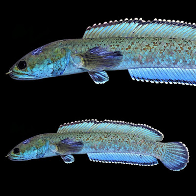 Abstract A new species of colorful snakehead from Meghalaya, northeastern India is distinguished from all its congeners by possessing a uniform bright blue to bluish-green body, bright-blue dorsal, anal, and caudal fins, submarginally black with white distal margin, series of brown to maroon-red, rounded, oblong or clover-shaped blotches or spots on dorsolateral, postorbital, and ventrolateral region of head, continued on body forming oblique pattern or randomly distributed. The new species superficially resembles C. pardalis and C. bipuli in appearance, but it can be distinguished from both in having brown to maroon-red, rounded, oblong or clover-shaped blotches or spots on head and sides of the body (vs. possession of well-defined, black to brown, rounded to oblong spots), fewer pre-dorsal scales (7 vs. 8–9), more caudal-fin rays (15 vs. 13), and more vertebrae (49 vs. 45). The new species differs from both C. pardalis and C. bipuli by Kimura's two-parameter (K2P) distance of 4.2–4.8 and 4.9–6.0% in the coxI gene sequence. A key to the snakehead Gachua group of the Eastern Himalayan region is provided herein.