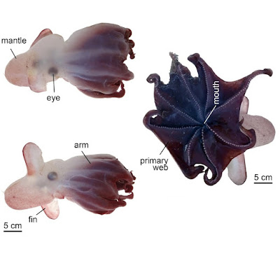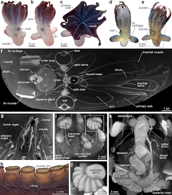 Alexander Ziegler and Christina Sagorny. 2021. Holistic Description of New Deep Sea Megafauna (Cephalopoda: Cirrata) using A Minimally Invasive Approach. BMC Biology. 19: 81. DOI: 10.1186/s12915-021-01000-9Alan J. Jamieson and Michael Vecchione. 2020. First in situ observation of Cephalopoda at hadal depths (Octopoda: Opisthoteuthidae: Grimpoteuthis sp.). Marine Biology. 167, 82. DOI 10.1007/s00227-020-03701-1 Open Access Footage captured of cephalopod at deepest ocean level ever observed