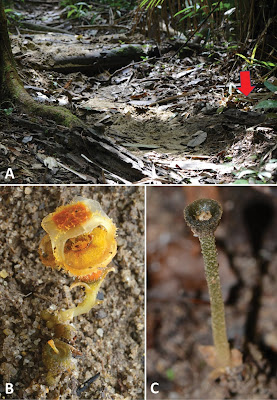 | Figure 1. Thismia sitimeriamiae Siti-Munirah, Dome & Thorogood A the habitat in Gunung Sarut, in the State of Terengganu (PM) B the habit of flowering specimen C a fruiting specimen (in situ). |