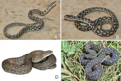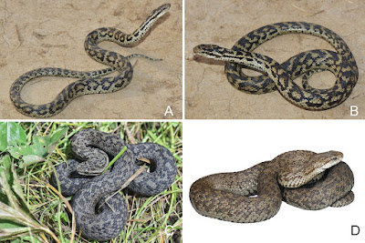 | Figure 1. Gloydius lipipengi sp. nov. (A, B IVPP OV 2720, holotype) and Gloydius swild sp. nov. (C IVPP OV 2725, holotype, D IVPP OV, 2726, paratype)
