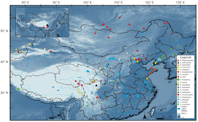 | Figure 6. Type localities of Gloydius lipipengi sp. nov. (red triangles) and G. swild sp. nov. (black triangles), with the collection localities of some other congeneric species.