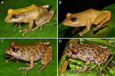 | (A-B) Pristimantis chocolatebari & (C-D) Pristimantis carylae