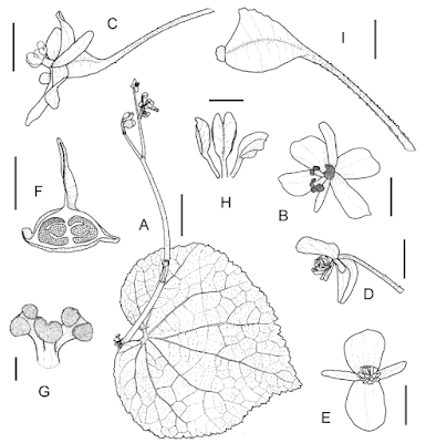 Diagnosis. The plant is most similar to B. martabanica A. DC. but differs in smaller habitus, reniform-cordate leaves (vs. leaves ovate), peduncle, pedicle and capsules with glandular hairs (vs. pubescent with simple hairs) (Fig. 2D, 5).