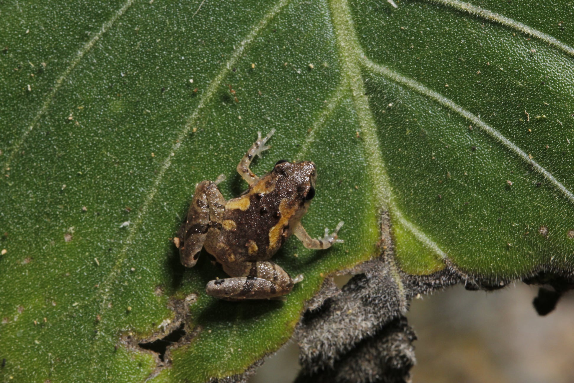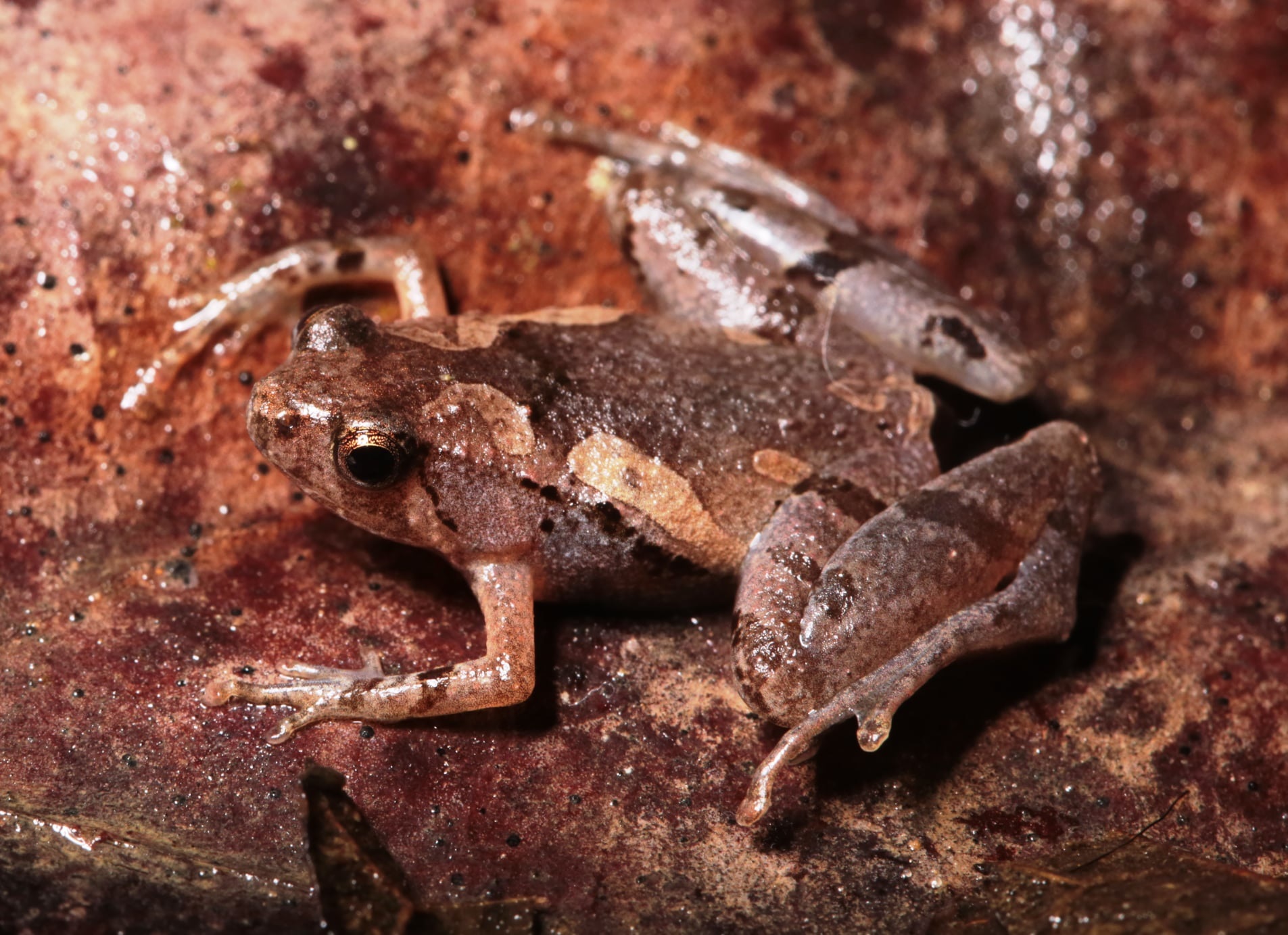 | Dorsolateral view of holotype of Microhyla tetrix sp. nov. in situ (AUP 00603, a female from Klong Sok Dist., Surat Thani Prov.).