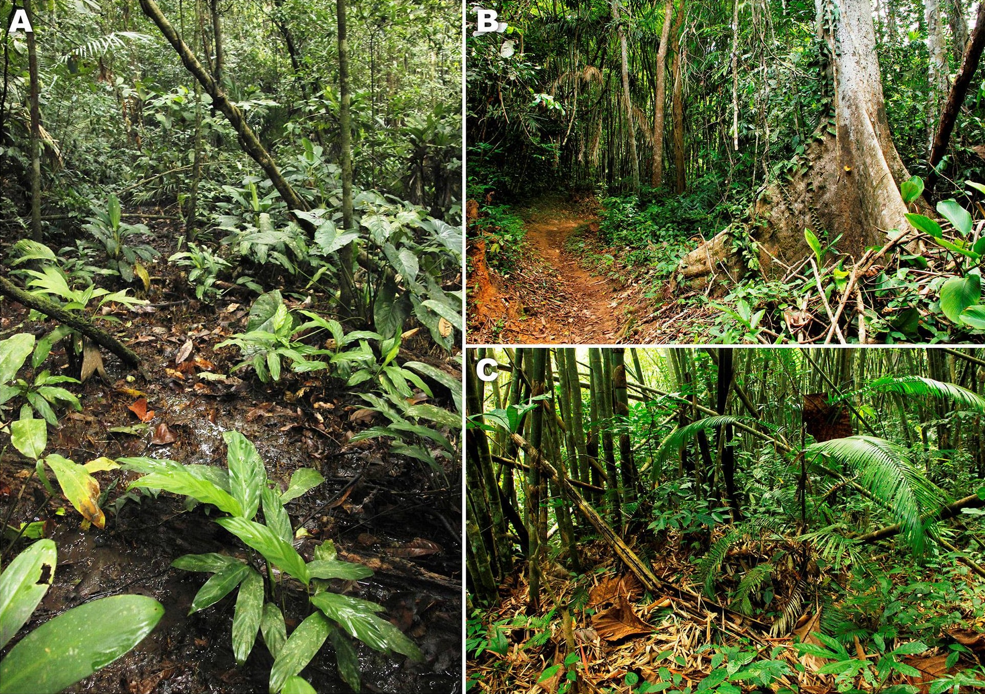 | Natural habitats of Microhyla in Thai-Malay Peninsula. (a) Breeding habitat of Microhyla tetrix sp. nov. at Klong Sok Dist., Surat Thani Prov., Thailand (type locality); (b, c) natural habitat of Microhyla superciliaris at Saba Yoi, Songkhla Prov., Thailand.