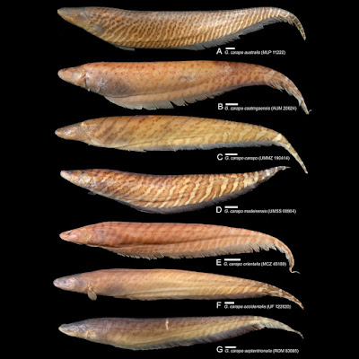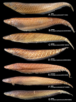 Jack M. Craig, William G. R. Crampton and James S. Albert. 2017. Revision of the Polytypic Electric fish Gymnotus carapo (Gymnotiformes, Teleostei), with Descriptions of Seven Subspecies. Zootaxa. 4318(3); 401–438. DOI: 10.11646/zootaxa.4318.3.1