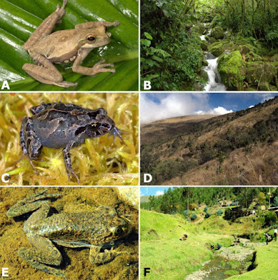 [Herpetology | Microbiology • 2018] Widespread Elevational Occurrence of Antifungal Bacteria in Andean Amphibians Decimated by Disease: A Complex Role for Skin Symbionts in Defense Against Chytridiomycosis Emerging infectious disease is a growing threat to global health, and recent discoveries reveal that the microbiota dwelling on and within hosts can play an important role in health and disease. To understand the capacity of skin bacteria to protect amphibian hosts from the fungal disease chytridiomycosis caused by Batrachochytrium dendrobatidis (Bd), we isolated 192 bacterial morphotypes from the skin of 28 host species of frogs (families Bufonidae, Centrolenidae, Hemiphractidae, Hylidae, Leptodactylidae, Strabomantidae, and Telmatobiidae) collected from the eastern slopes of the Peruvian Andes (540–3,865 m a.s.l.) in the Kosñipata Valley near Manu National Park, a site where we previously documented the collapse of montane frog communities following chytridiomycosis epizootics. We obtained isolates through agar culture from skin swabs of wild frogs, and identified bacterial isolates by comparing 16S rRNA sequences against the GenBank database using BLAST. We identified 178 bacterial strains of 38 genera, including 59 bacterial species not previously reported from any amphibian host. The most common bacterial isolates were species of Pseudomonas, Paenibacillus, Chryseobacterium, Comamonas, Sphingobacterium, and Stenotrophomonas. We assayed the anti-fungal abilities of 133 bacterial isolates from 26 frog species. To test whether cutaneous bacteria might inhibit growth of the fungal pathogen, we used a local Bd strain isolated from the mouthparts of stream-dwelling tadpoles (Hypsiboas gladiator, Hylidae). We quantified Bd-inhibition in vitro with co-culture assays. We found 20 bacterial isolates that inhibited Bd growth, including three isolates not previously known for such inhibitory abilities. Anti-Bd isolates occurred on aquatic and terrestrial breeding frogs across a wide range of elevations (560–3,695 m a.s.l.). The inhibitory ability of anti-Bd isolates varied considerably. The proportion of anti-Bd isolates was lowest at mid-elevations (6%), where amphibian declines have been steepest, and among hosts that are highly susceptible to chytridiomycosis (0–14%). Among non-susceptible species, two had the highest proportion of anti-Bd isolates (40 and 45%), but one common and non-susceptible species had a low proportion (13%). In conclusion, we show that anti-Bd bacteria are widely distributed elevationally and phylogenetically across frog species that have persisted in a region where chytridiomycosis emerged, caused a devastating epizootic and continues to infect amphibians. Keywords: 16S rRNA gene, amphibian declines, amphibian skin bacteria, antifungal bacteria, elevational gradient, montane diversity gradient, neotropical, tropical Andes Conclusion: We found that anti-Bd bacteria are widely distributed across bacterial phyla and genera, occur along a wide elevational range in the Amazon to Andes transition, and are found on amphibian hosts that use aquatic, terrestrial and arboreal environments. The pattern of elevational distribution of anti-Bd isolates, and the association of high proportion of anti-Bd isolates of high inhibitory strength with low host susceptibility to disease, support the idea that symbiotic bacteria play a functional role in amphibian skin defense. Yet this association does not consistently explain the fate of amphibian hosts along the elevational gradient, suggesting complex interactions among bacterial symbionts, hosts, and environmental factors in determining frog persistence in a region of high disease prevalence. Alessandro Catenazzi, Sandra V. Flechas, David Burkart, Nathan D. Hooven, Joseph Townsend and Vance T. Vredenburg. 2018. Widespread Elevational Occurrence of Antifungal Bacteria in Andean Amphibians Decimated by Disease: A Complex Role for Skin Symbionts in Defense Against Chytridiomycosis. Front. Microbiol., DOI: 10.3389/fmicb.2018.00465 |