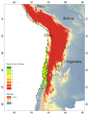 | Fig. 2. Taxonomic richness distribution of Eriosyce s.l. at the species and infraspecific ranks. |
