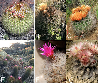 Pablo C. Guerrero, Helmut E. Walter, Mary T.K. Arroyo, Carol M. Peña, Italo Tamburrino, Marta De Benidictis and Isabel Larridon. 2019. Molecular Phylogeny of the Large South American Genus Eriosyce (Notocacteae, Cactaceae): Generic Delimitation and Proposed Changes in Infrageneric and Species Ranks. Taxon. DOI: 10.1002/tax.12066