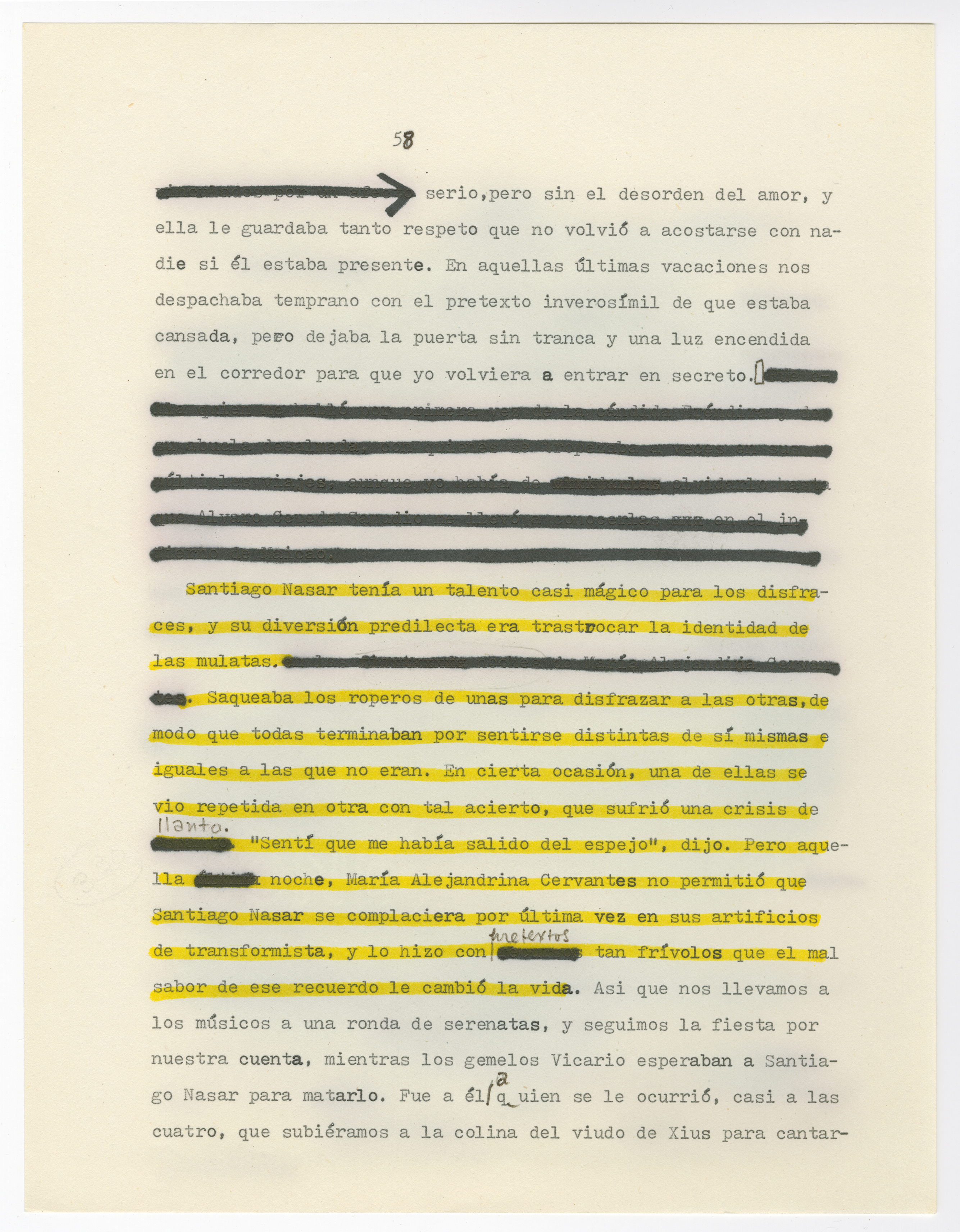 New Gabriel García Márquez Digital Archive Features More Than 27,000 Digitized Letters, Manuscript Pages, Photos & More Unidentified photographer. Gabriel García Márquez in Aracataca, March 1966. When Gabriel García Márquez died in 2014, it was said that only the Bible had sold more books in Spanish than the Colombian writer’s work: Love in the Time of Cholera, The Autumn of the Patriarch, Chronicle of a Death Foretold, The General in His Labyrinth… and yes, of course, One Hundred Years of Solitude, the 1967 novel William Kennedy described in a New York Times review as “the first piece of literature since the Book of Genesis that should be required reading for the entire human race.” García Márquez began to hate such elevated praise. It raised expectations he felt he couldn’t fulfill after the enormous success of that incredibly brilliant, seemingly sui generis second novel. Everyone in South America read the book. To avoid the crowds, the author moved to Spain (where Mario Vargas Llosa wrote a doctoral dissertation on him). He needn’t have worried. Everything he wrote afterward met with near-universal acclaim—bringing earlier work like No One Writes to the Colonel, Leaf Storm, short story collections like A Very Old Man with Enormous Wings, and decades of journalism and non-fiction writing—to a much wider readership than he’d ever had before. Gabriel García Márquez's revised typescript of Chronicle of a Death Foretold, 1980. After Gregory Rabassa’s 1970 translation of One Hundred Years of Solitude, waves of “magical realist” and Latin American literature from the 50s and 60s swept through the English-speaking world, much of it in translation for the first time. García Márquez declared the English version of his novel better than the original, and affectionately called Rabassa, “the best Latin American writer in the English language.” Upwards of 50 million people worldwide now know the story of the Buendía family. “Published in 44 languages,” The Atlantic notes, “it remains the most translated literary work in Spanish after Don Quixote, and a survey among international writers ranks it as the novel that has most shaped world literature over the past three decades.” The story of the book’s composition is even more fascinating. In the Democracy Now tribute video below, you can hear García Márquez himself tell it. And at the University of Texas at Austin’s Harry Ransom Center, we can see artifacts like the photograph of the author at the top, in his hometown of Aracataca, Colombia in March of 1966, during the composition of One Hundred Years of Solitude. We can see scanned images of typescript like the page above from Chronicle of a Death Foretold.